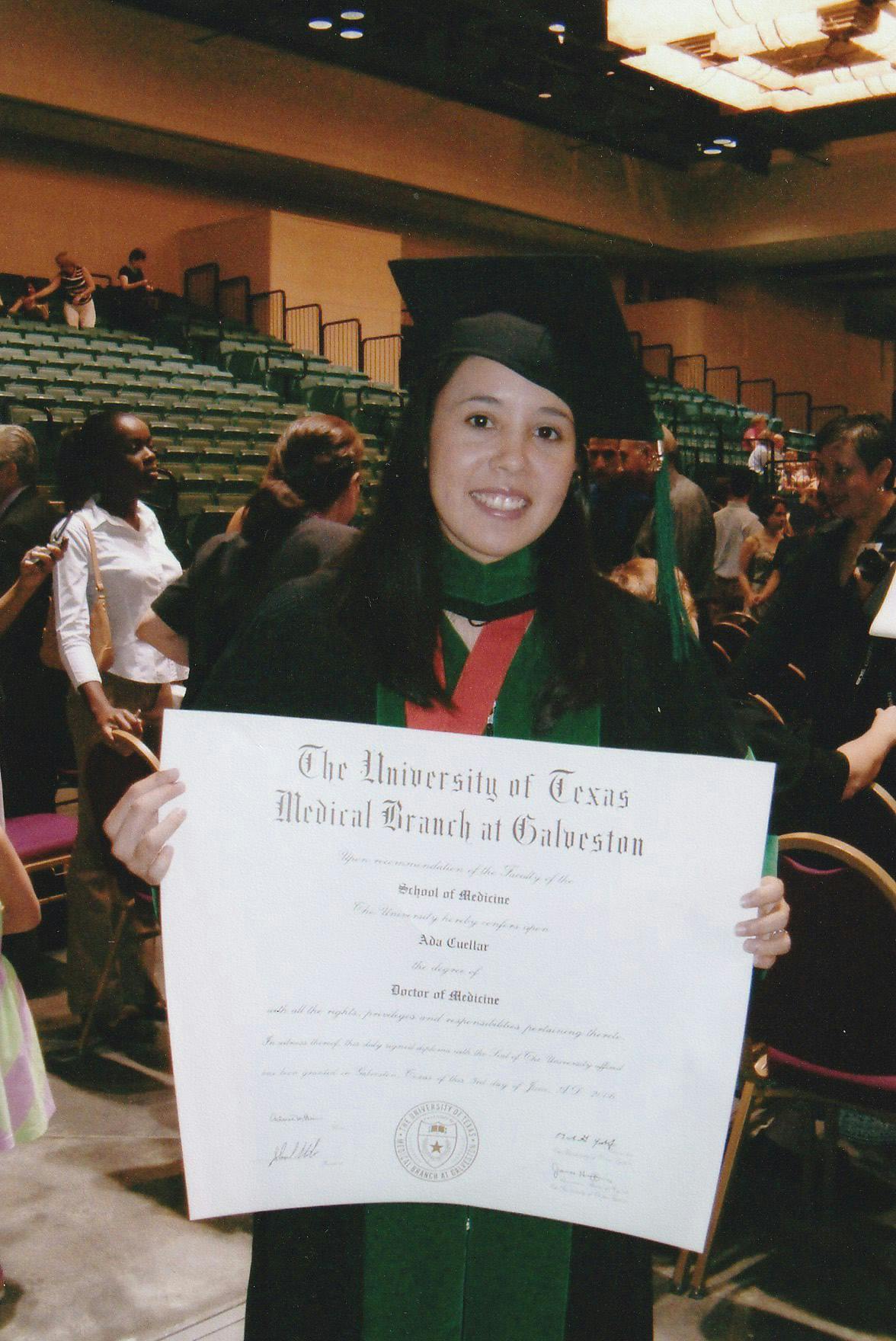 Growing up in Weslaco, Texas, Dr. Ada Cuellar was shaped by her upbringing in the Rio Grande Valley and a deep commitment to her family, her community, and now her patients. The daughter of an electrician and a homemaker, Ada grew up in a bilingual household that valued hard work and perseverance. Her parents invested in books and taught her to love learning. She excelled in school, driven by a determination to build a better life for her family and others like them.